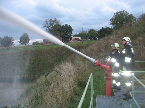 Am 19.9.2013 kurz nach 18:00 Uhr wurde die FF Eichhorn zu einer Unterabschnittsübung gerufen. Übungsannahme war: Im Tanklager der Firma RAG in Zistersdorf brennen 2 Tanks und müssen gelöscht werden. Die anderen Tanks müssen gekühlt werden, außerdem wurde noch eine Person vermisst. Im Einsatz waren die Wehren des Unterabschnittes (Eichhorn, Gösting, Maustrenk, Windisch-Baumgarten und Zistersdorf) und die FF Loidesthal, die den Atemluftkompressor stellte. Die FF Eichhorn, unter der Leitung von OLM Helnut Strasser, stellte einen Atemschutztrupp der einen Wasserwerfer im verrauchten Gebiet bediente. Die restliche Mannschaft bediente einen weiteren Wasserwerfer. Die Übungsbeobachter, Unterabschnittskommandant HBI Franz Kollmann, der Kdt. des Unterabschnittes 4 HBI Franz Stary und der technische Leiter des Betriebsgeländes waren mit dem Einsatzerfolg zufrieden. Ein Dank gilt der Firma RAG für die ausgezeichnete Verpflegung nach dieser Übung.