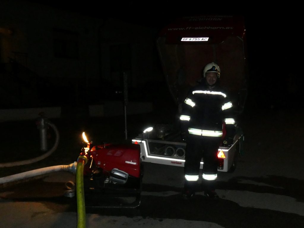 Die Übung wurde von HF Michael Wirrer und PFM Phillip Hickl ausgearbeitet. BI Florian Hrdy bekam als Einsatzleiter folgende Aufgabe: Bei Holzarbeiten war eine Person unter einem umgestürzten Baum eingeklemmt, eine weitere war am abschüssigen Gelände ausgerutscht und musste auch gerettet werden. In unmittelbarer Nähe des eingeklemmten brannte ein Feuer. Etwas weiter entfernt war bei Bienenstöcken ebenfalls ein Feuer ausgebrochen. Der Einsatzleiter beauftragte HVM Günter Hickl mit der Mannschaft des HLF mit der Menschenrettung und dem löschen des Feuers in der unmittelbaren Nähe. Da das HLF nur mit 6 Personen besetzt war, begann man zuerst mit der Menschenrettung neben dem Feuer und forderte von der Gruppe mit dem MTF weitere Personen für die Brandbekämpfung an. HLM Herbert Schwarzmann bekam mit dem MTF und TSA den Auftrag die Brandbekämpfung an den Bienenstöcken durchzuführen, dazu wurde mittels TS eine Zubringeleitung vom Eichhorner Bach gelegt und mit 2 C Rohren der Brand bekämpft.