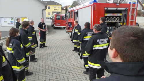 Am 26.3. fand die zweite Einsatzübung der FF Eichhorn im Jahr 2023 statt. Die Übung hatte OFM Manuel Nejedly ausgearbeitet. Der Einsatzleiter, V Günther Asperger, hatte einen Brand eines Schuppens außerhalb der Ortschaft zu bekämpfen. HLM Hermann Pfarr bekam mit dem HLF-1 die Aufgabe den Brand zu bekämpfen, HFM Jürgen Popp kümmerte sich mit dem MTF und TSA um die Wasserversorgung von einem nahegelegenen Unterflurhydrant. Im Anschluss wurde noch der Aufbau der Beleuchtung geübt und das Stromaggregat erklärt.