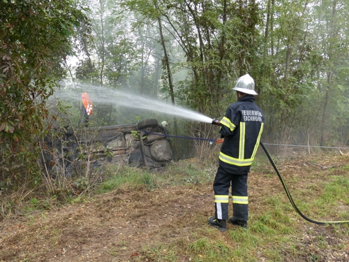 15 Kameraden der FF Eichhorn bei der Heißausbildung Stufe 4