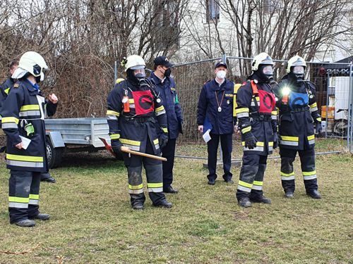 Am 14.3.2021 fand die Abschlussprüfung zur Ausbildungsprüfung Löscheinsatz in Zistersdorf unter Eichhorner Beteiligung statt. Helmut Andre, Stefan Andre, Florian Hrdy und Michael Wirrer traten unter Mithilfe von Zistersdorfer Kameraden an. Nach einem theoretischen Teil kam dann der praktische Teil bei dem ein simulierter Zimmerbrand mit einem Innenangriff durch einen Atemschutztrupp bekämpft wurde. Hauptprüfer war VI Reinhard Bauer. Der Abschnittskommandant BFR Eduard Kammerer und sein Stellvertreter ABI Johann Kindl gratulierten den Kameraden zur bestandenen Prüfung.