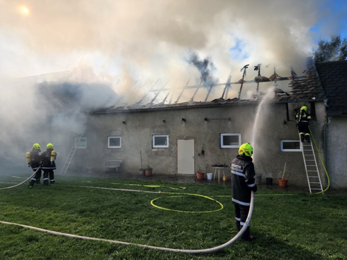 Der Dachstuhl eines Wirtschaftsgebäudes stand beim Eintreffen der ersten Einsatzkräfte in Vollbrand. Der Besitzer des Gebäudes leitete erste Löschmaßnahmen über einen Hausbrunnen mit zwei C Schläuchen und einem Strahlrohr ein. Das beherzte Eingreifen des Besitzers und die ersten Löschmaßnahmen der FF Eichhorn verhinderten buchstäblich in letzter Sekunde eine Ausbreitung auf das Wohnhaus und ein angrenzendes Wirtschaftsgebäude. Mehrere Atemschutztrupps bekämpften die Flammen, was rasch Wirkung zeigte. Allerdings war auf dem Dachboden des Wirtschaftsgebäudes Stroh gelagert. Die einzige Möglichkeit den Brand vollständig zu löschen, bestand darin, das Stroh zu entfernen. Nach dem Entfernen der Dachbalken mittels Motorsäge unter schwerem Atemschutz wurde mit zwei Greifern das Stroh vom Dachboden befördert und gezielt abgelöscht. Knapp vor Mittenacht konnte „Brand aus“ gegeben werden. Von da an wurden noch Brandwachen (ausgerüstet mit einer Wärmebildkamera) bis 7 Uhr Früh des kommenden Tages eingeteilt. Da bis dahin keine Auffälligkeiten mehr waren, konnten anschließend auch noch die letzten Geräte versorgt werden und die letzten Kameraden einrücken.