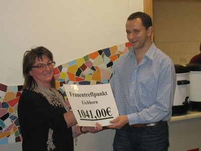 Bei vielen dieser Fenster wurde am Tag der Eröffnung Punsch bzw. Glühwein angeboten und eine Spendenbox für einen guten Zweck aufgestellt. Die meisten widmeten die Spenden der Freiwilligen Feuerwehr Eichhorn. Am 28.12. fand eine Adventwanderung statt, wo noch einmal von der Ortsbevölkerung gemeinsam alle Fenster besichtigt wurden. Im Anschluss traf man sich im Feuerwehrhaus zum gemütlichen Beisammensein bei Punsch, Krautsuppe, Bohnensuppe und Chilli con Carne. Bei diesem Treffen nützte die Obfrau des Kulturvereins Frauentreffpunkt, Ingrid Asperger, die Gelegenheit die gesammelten Spenden in der Höhe von EUR 1.041,- der Feuerwehr zu übergeben. Der Feuerwehrkommandant OBI Roman Strasser bedankte sich für die Spende und hob noch einmal die gute Zusammenarbeit der Vereine in Eichhorn hervor.