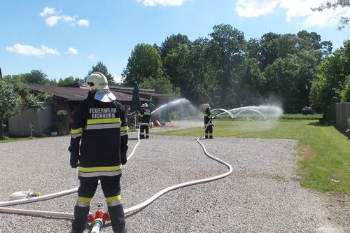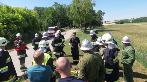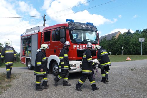 Am 16.7.2021 fand die Ausbildungsprüfung Atemschutz in Eichhorn statt. 4 Gruppen stellten sich der Prüfung unter Hauptprüfer HBI Franz Stary und den Prüfern OLM Martin Setik und LM Thomas Bock. Bei dieser Prüfung sind vier Stationen zu absolvieren: Zu Beginn wird das richtige Ausrüsten mit schwerem Atemschutz überprüft, anschließend muss in einem verrauchten Raum eine Person gerettet werden und eventuell vorhandene Schadstoffe gemeldet werden. Weiters muss eine Hindernisstrecke mit einer Löschleitung überwunden werden. Zum Abschluss müssen die Geräte noch richtig versorgt werden und die Einsatzbereitschaft wieder hergestellt werden, auch das wird von den Prüfern überwacht. Nebenbei musste der Gruppenkommandant auch noch Fragen zum Thema Atemschutz beantworten. Alle 4 Gruppen haben diese Prüfung mit Bravour bestanden. Die Leistungsabzeichen wurden im Anschluss von den Prüfern gemeinsam mit dem Abschnittsfeuerwehrkommandanten BFR Edi Kammerer und dem Stadtrat Johannes Bättig überreicht. Danke an Franz Stary mit seinem Team für die Abnahme der Prüfung aber auch für die Unterstützung bei den Übungen vorher, und an EOLM Hannes Kammerer aus Niederabsdorf der für die Füllung der Atemschutzflaschen vor Ort war.