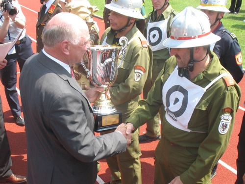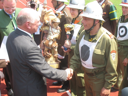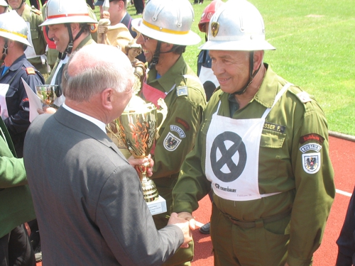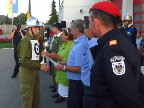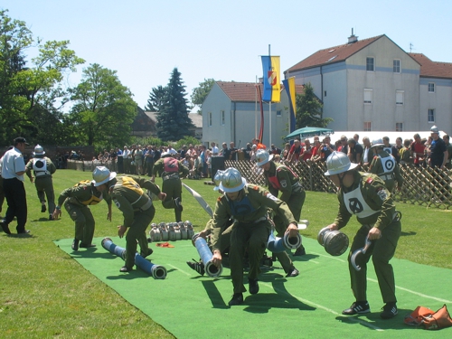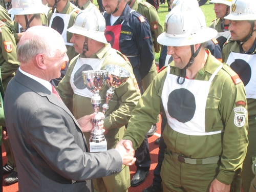 Riesenerfolg für die Feuerwehrmänner aus Eichhorn! Beim 62. NÖ Landesfeuerwehrleistungsbewerb in Ternitz holte die 3-er Gruppe im B-Bewerb beide Siege und als Draufgabe noch den 2. Platz beim Firecup.Vom 29.6. bis 1.7.2012 fand der 62. NÖ Landesbewerb in Ternitz statt. Eichhorn 1 hatte als Ziel wie in den Jahren zuvor einen Wanderpreis zu erkämpfen. In Bronze kamen sie aber leider nicht über 33,7 hinaus und verpassten damit einen Wanderpreis, einen Pokal holten sie damit aber noch als 9. In Silber eine gute Übung: 37,03 aber leider mit 10 Fehlerpunkten, damit kam man leider nicht in die vorderen Ränge. Der Firecup ist für die 1-er Gruppe schon eine eigene Geschichte, noch nie hatte man bei diesem Bewerb eine gute Leistung gebracht. Es sollte sich auch heuer nicht ändern. Mit einer 35-er Zeit und 15 Fehlerpunkten reichte es nur für Platz 18.Eichhorn 3 hatte in Bronze eine Löschangriffszeit von 35,65. Mit 24 Alterspunkten und einem guten Staffellauf durfte man auf einen Platz unter den ersten 3 rechnen. Am Ende reichte es sogar für den 1. Platz. Das war der 39. Landessieg für Eichhorn.In Silber wieder eine gute Übung: 40,24 fehlerfrei mit 22 Alterspunkten. Auch damit kamen sie auf den 1. Platz und holten damit den bereits 40. Landessieg nach Eichhorn.Als Draufgabe holte die 3-er dann noch beim Firecup mit 35,7 den 2. Platz.